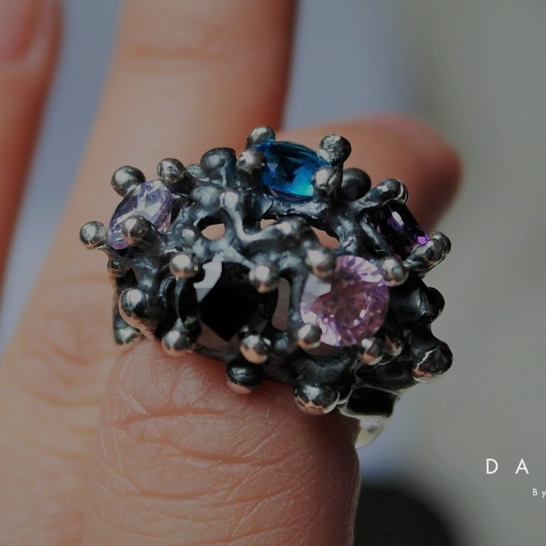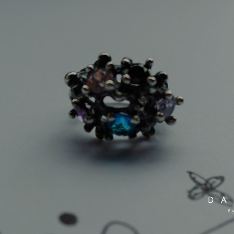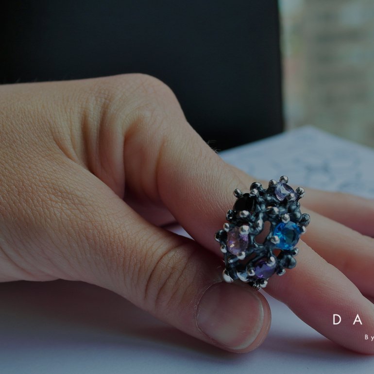 Hermosa argolla ancha con circones de colores (puedes elegir el color de los mismos) y terminado envejecido.