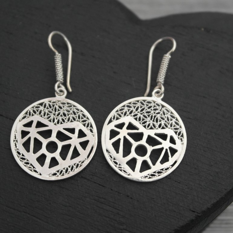 Aretes en plata redondos. Dentro de estos encuentras nuestro #corazónrebelde Dauntless y relleno de filigrana.