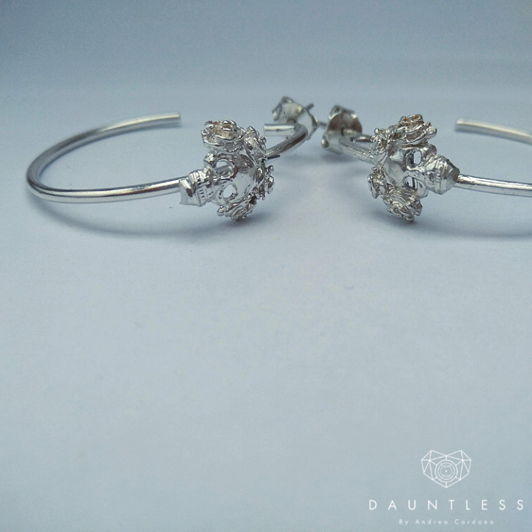 Candongas en plata y mini catrina.