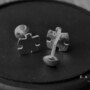 Mancornas en forma de ficha de rompecabezas. Se pueden personalizar con alguna marca, iniciales, fecha.