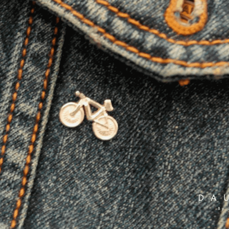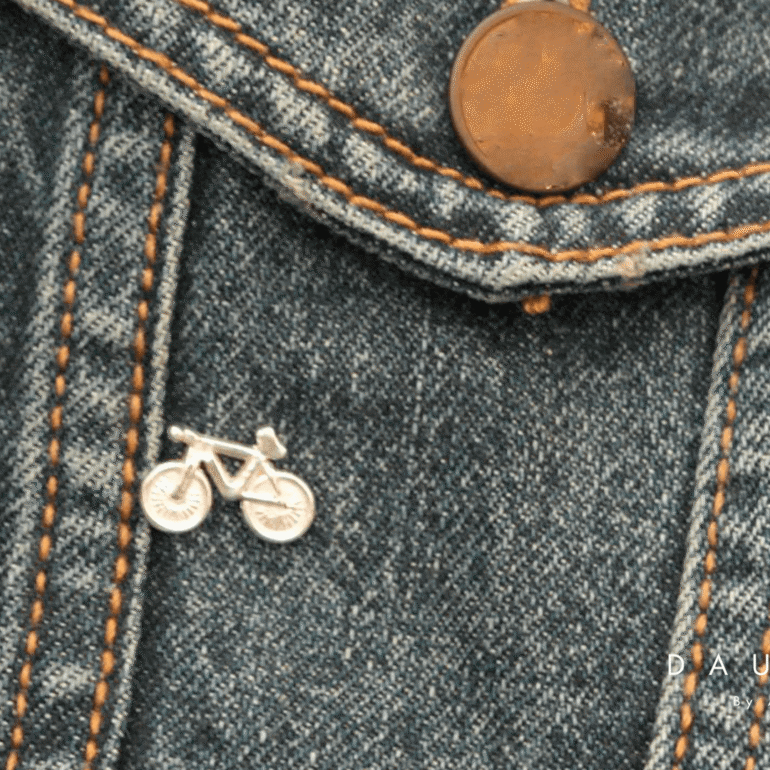Pin en forma de bicicleta. Puedes elegir el acabado, brillante o envejecido.