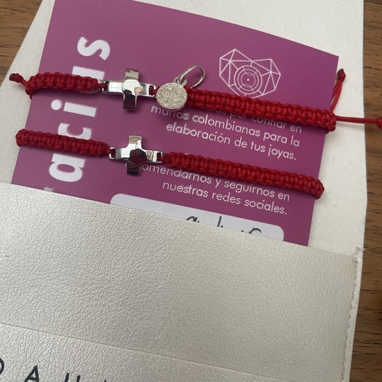 Pulsera Tejida con Cruz de Plata
