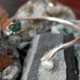 Pulsera con engaste en hilos de plata en forma de nido, murralla de esmeralda y perla cultivada.