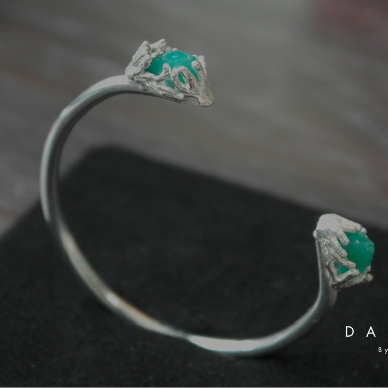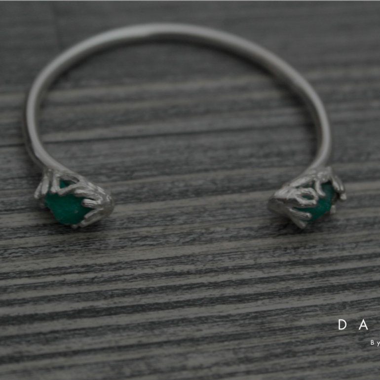 Aro en plata con engaste de plata en forma de nido de murralla de esmeralda.