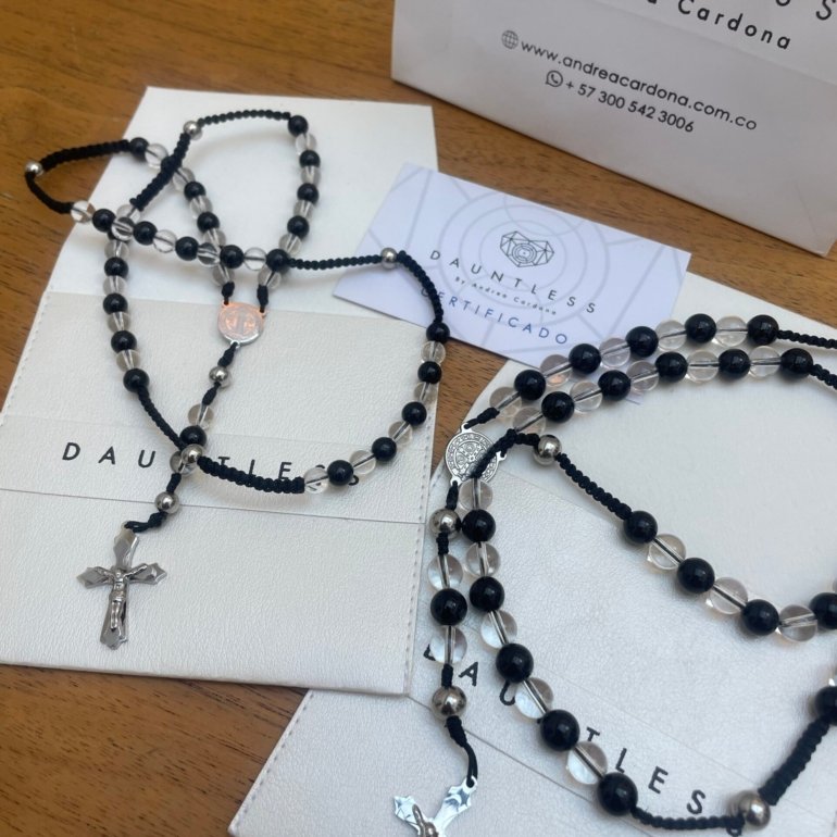 Nuestros rosarios son una expresión de devoción y estilo, ofreciendo una amplia variedad de combinaciones de piedras semipreciosas para que puedas elegir la que más resuene contigo.