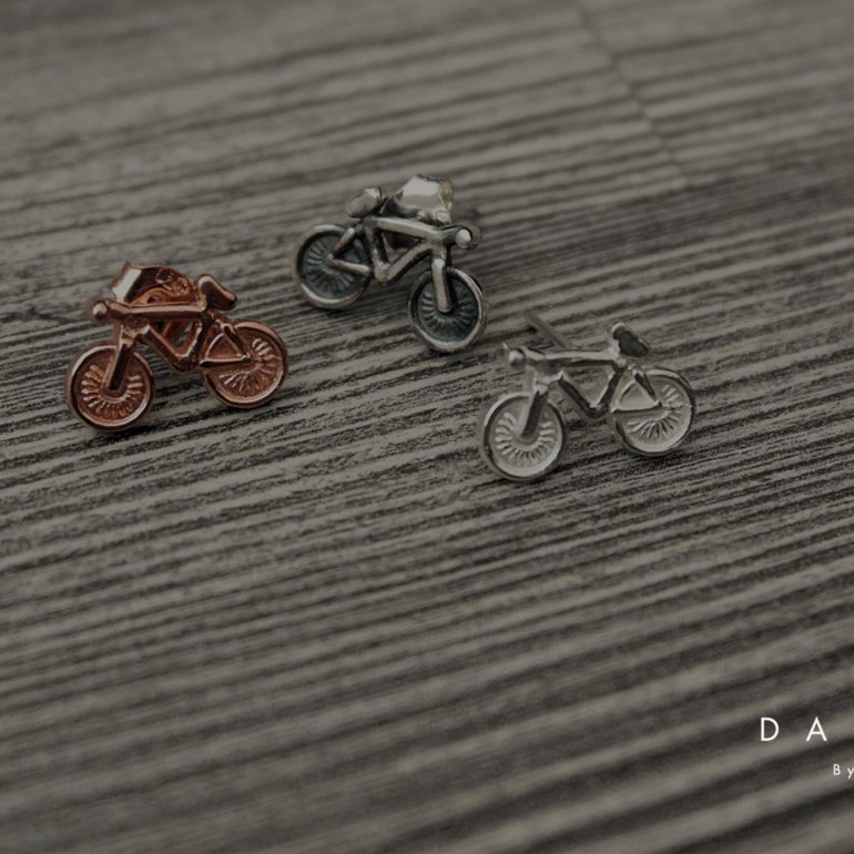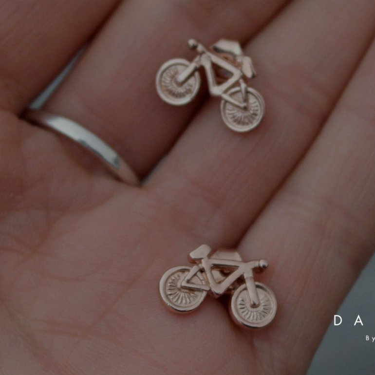 Aretes (topos) en forma de bicicleta en plata ley 925. Perfectos para llevar tu pasión a todos lados incluyendo tu bici ya que son livianos.